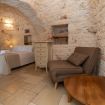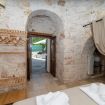 The property can accommodate up to 4 guests and consists of two double bedrooms. One of the rooms is inside the original trullo, featuring cone-shaped ceilings and a cozy, evocative atmosphere. The master bedroom includes an essential en-suite bathroom with a toilet and sink.